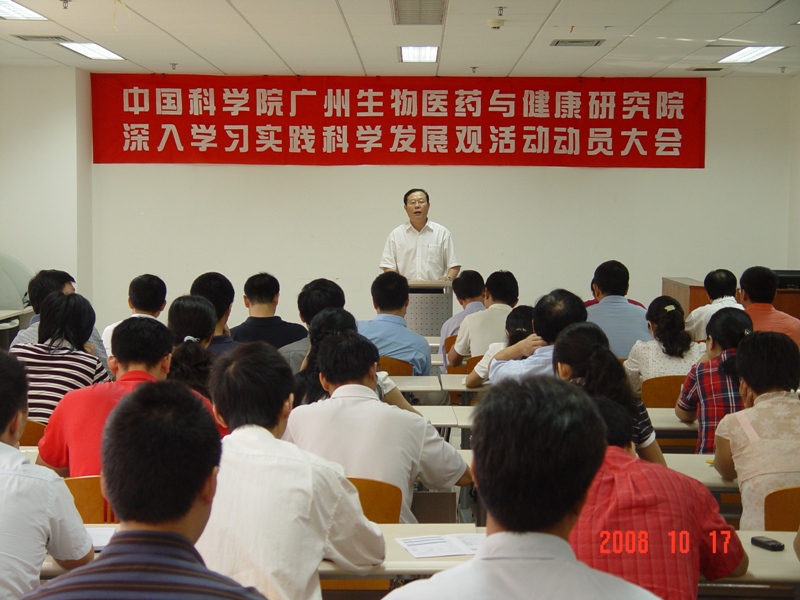 10月17日,我院召開深入學(xué)習(xí)實踐科學(xué)發(fā)展觀活動動員大會。大會由副院長朱詠峰主持,黨委書記、副院長黃建沖做動員報告,我院全體PI、院管理部門全體干部職工、各黨支部書記、支委近70人參加了會議。