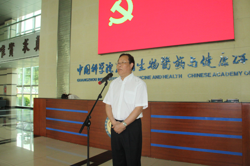 6月27日下午,中科院廣州生物醫(yī)藥與健康研究院藥物開發(fā)體系(DDP)黨支部在研究院大廳隆重舉行了新黨員入黨宣誓儀式。儀式由黨支部書記劉小蓉主持,院黨委書記黃建沖、黨支部全體黨員、全院入黨積極分子和其他團(tuán)隊(duì)黨支部黨員代表參加了儀式。
