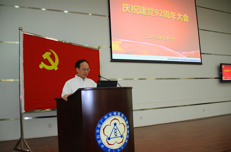 7月1日,中科院廣州生物院召開慶祝建黨92周年大會,院長裴端卿、副院長朱詠峰、黨委副書記侯紅明及全院黨員、入黨積極分子參加了會議。大會由朱詠峰主持。