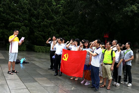 當天上午,天空下著毛毛細雨,廣州生物院行政黨支部全體黨員佩戴黨徽,來到黃花崗七十二烈士陵園,向烈士紀念碑敬獻了鮮花,在黨旗下重溫了入黨誓詞,瞻仰了烈士紀念碑,向革命先烈表達無限崇敬與哀思之情。