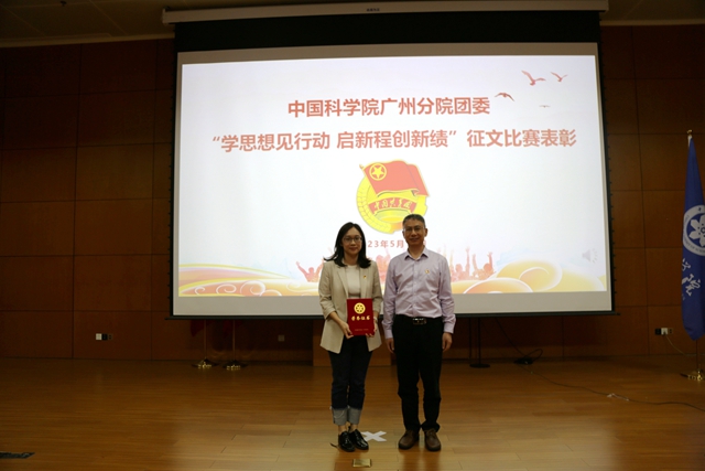 在中國科學(xué)院廣州分院團(tuán)委舉辦的紀(jì)念五四運(yùn)動(dòng)104周年表彰大會(huì)暨“學(xué)思想見行動(dòng) 啟新程創(chuàng)新績”演講比賽中,廣州健康院團(tuán)委書記黃博純同志撰寫的題為《筑夢灣區(qū)——開辟華南生物醫(yī)藥研究新天地》的征文在眾多優(yōu)秀作品中脫穎而出,榮獲一等獎(jiǎng)。在演講比賽環(huán)節(jié),研究院周廣琦、潘路遙、仇童、孫珍珠四名選手演講的內(nèi)容正是黃博純的獲獎(jiǎng)?wù)魑?/span>,他們憑借巧妙的構(gòu)思、青春的形象和精彩的演繹獲得演講比賽一等獎(jiǎng)。