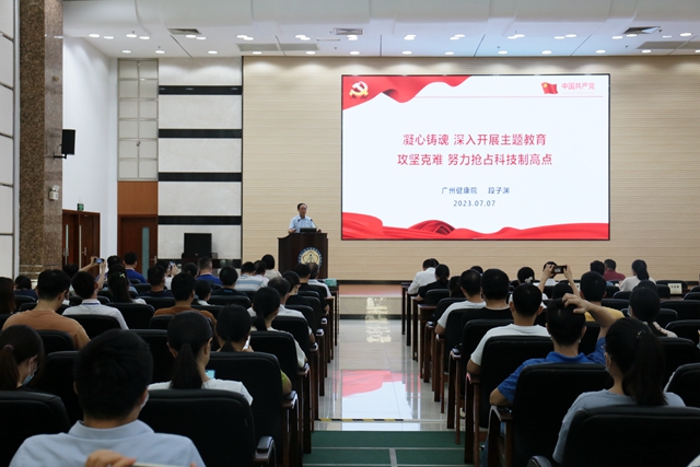 7月7日,廣州健康院召開學(xué)習(xí)貫徹習(xí)近平新時(shí)代中國(guó)特色社會(huì)主義思想主題教育黨員大會(huì)暨慶祝建黨102周年大會(huì)。黨委書記段子淵作題為《凝心鑄魂 深入開展主題教育,攻堅(jiān)克難 努力搶占科技制高點(diǎn)》的黨課報(bào)告,黨委副書記、紀(jì)委書記侯紅明主持大會(huì)。