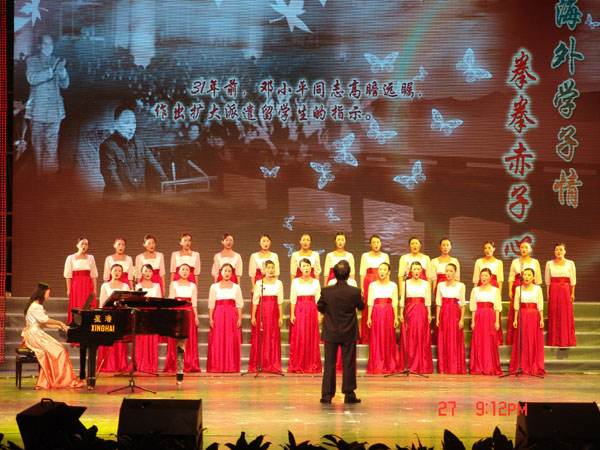 我院的表演節(jié)目從全國(guó)各地一百三十多個(gè)參選節(jié)目中脫穎而出,成為本臺(tái)匯演僅有的七個(gè)京外節(jié)目之一,也是廣州分院所屬地區(qū)的唯一代表節(jié)目。合唱團(tuán)演唱的曲目《我的根啊,在中國(guó)》富有深意,它寄予了中科院科研工作者愛國(guó)奉獻(xiàn)、創(chuàng)新報(bào)國(guó)的拳拳之心,詮釋了海派學(xué)子對(duì)祖國(guó)母親的深深思念之情以及早日學(xué)成歸來(lái)報(bào)效祖國(guó)的赤子情懷。這次赴京演出,廣州分院黨組書記郭俊、我院院領(lǐng)導(dǎo)裴端卿、黃建沖、朱詠峰都親臨演出現(xiàn)場(chǎng),給了合唱團(tuán)很大鼓舞。
