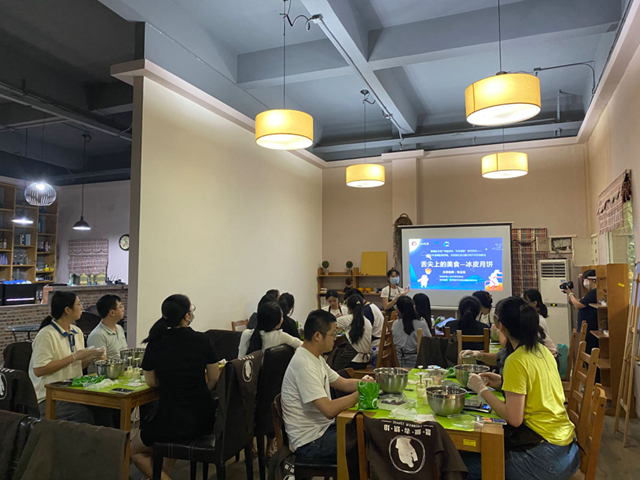 韋玉秀介紹了冰皮月餅的由來(lái)、制作方式、原料和工具,并詳細(xì)講解制作步驟和操作方法。隨后,參與人員動(dòng)手實(shí)踐,稱重、攪拌、倒水、搓揉、壓模,做出的月餅小巧玲瓏、柔韌彈牙、香甜可口,現(xiàn)場(chǎng)還提供了封裝服務(wù),美味的月餅裝入精美的包裝盒,絲絲入扣,愛(ài)意滿滿。