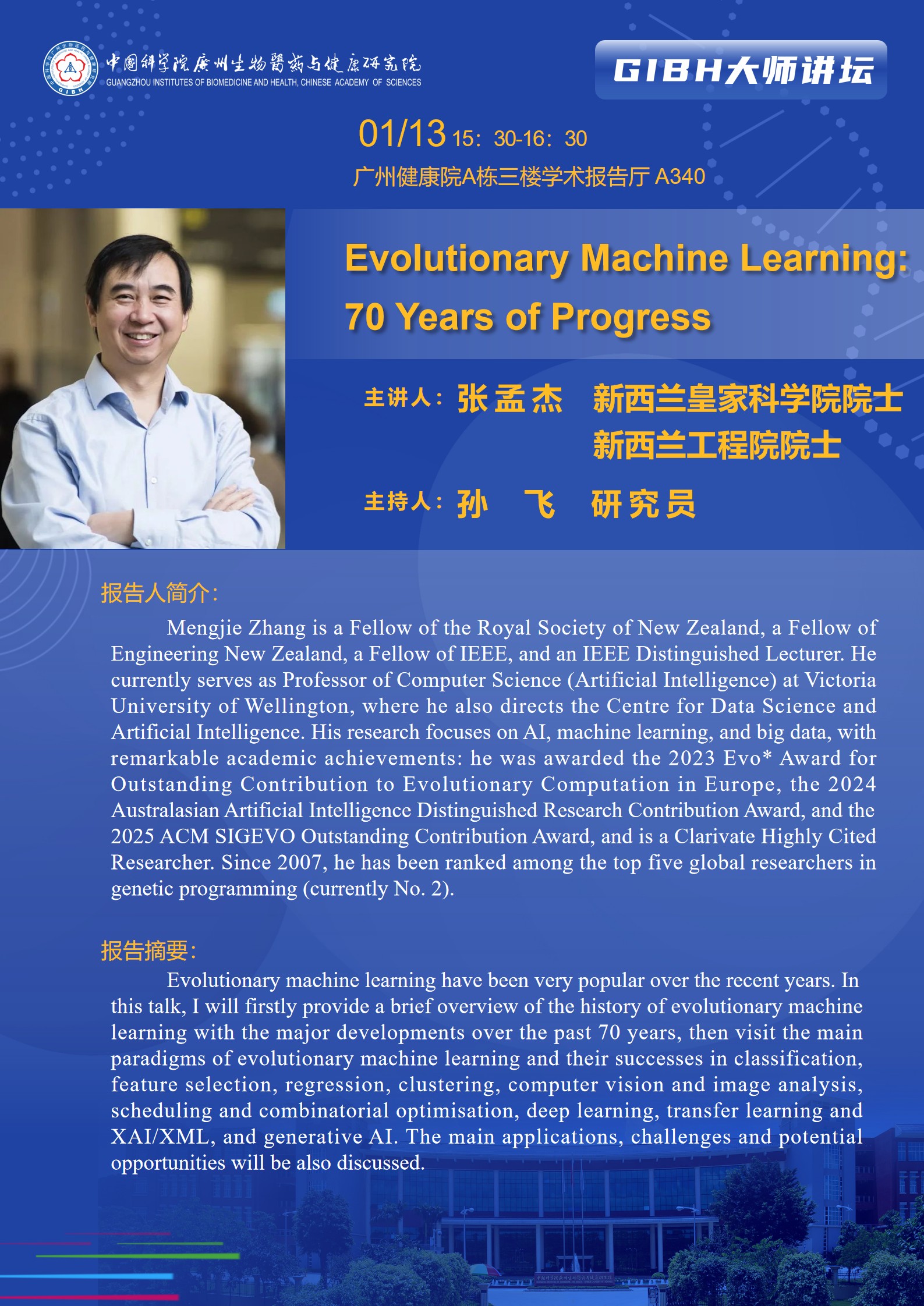 2026年1月13日大師講壇:Evolutionary Machine Learning: 70 Years of Progress