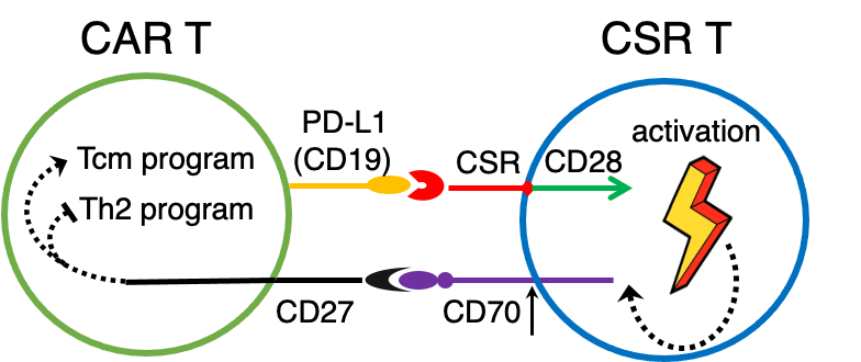 T細胞間CD70-CD27軸能夠促進CAR-T細胞向中樞記憶T細胞分化,同時抑制Th2類CAR-T細胞的形成(2022,Nature communications)
