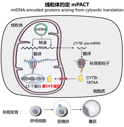該研究發(fā)現(xiàn)并證實了線粒體基因細(xì)胞色素b可編碼一個新的線粒體基因編碼胞質(zhì)翻譯的蛋白CYTB-187AA,進(jìn)一步表明CYTB-187AA在胞質(zhì)翻譯后定位到線粒體基質(zhì)中,通過能量通用貨幣“三磷酸腺苷”依賴的方式調(diào)控早期發(fā)育,在哺乳動物的早期發(fā)育中發(fā)揮重要作用。該研究改寫了教科書中“線粒體基因組編碼13個蛋白”的論斷,發(fā)現(xiàn)CYTB基因可以使用胞質(zhì)核糖體的標(biāo)準(zhǔn)遺傳密碼編碼第14個全新蛋白質(zhì),為線粒體的基礎(chǔ)生物學(xué)功能探索提供新角度。相關(guān)成果發(fā)表在Cell Metabolism上。?