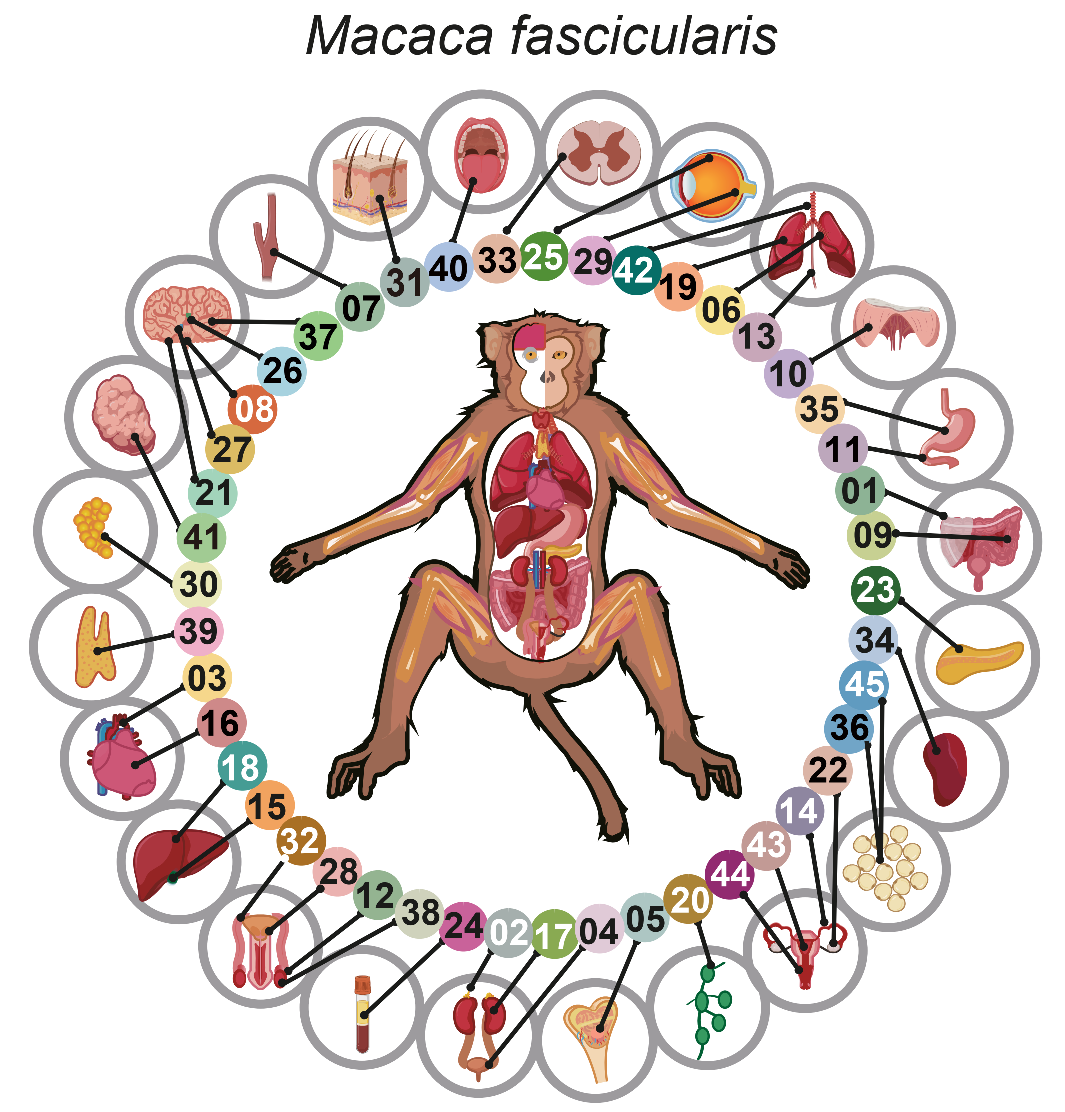 繪制成年獼猴45個組織超過100萬個細胞的轉錄組圖譜,構建了非人靈長類動物交互式數(shù)據(jù)庫。