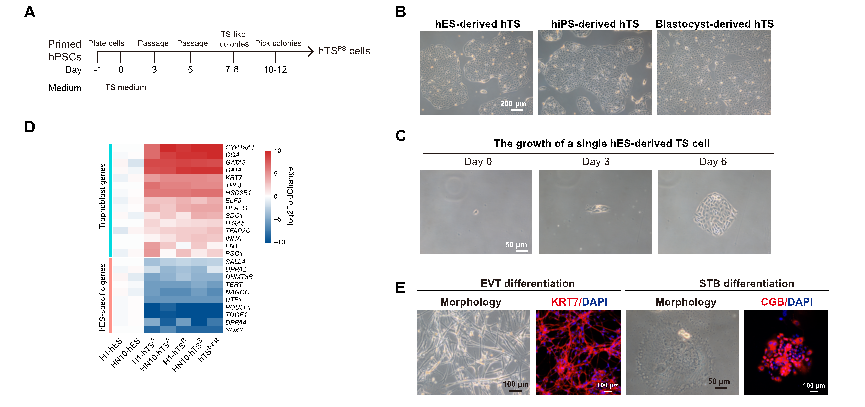 利用primed(始發(fā)態(tài))人多能干細胞高效獲得人滋養(yǎng)層干細胞,為研究胎盤發(fā)育及相關疾病提供了很好的模型。