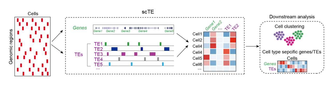 開發(fā)單細胞數(shù)據分析轉座元件工具scTE,首次將單細胞技術拓展到轉座元件研究。