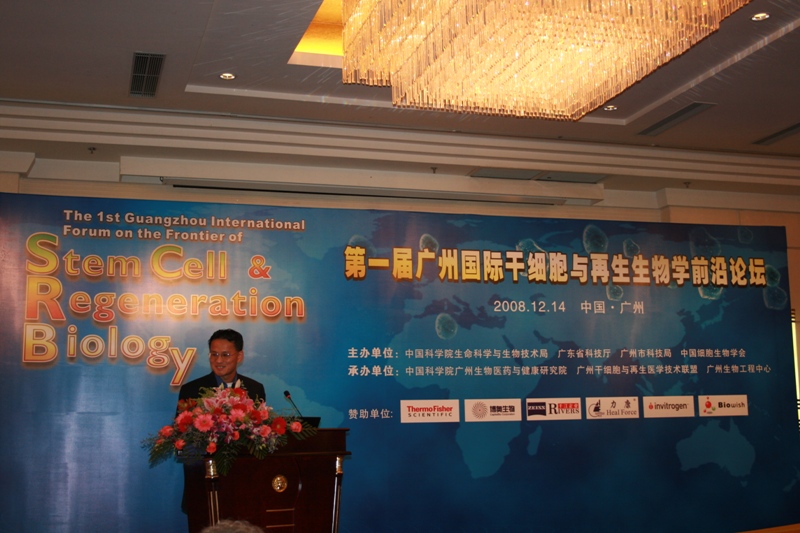 2008年12月14日,由中國科學(xué)院生命科學(xué)與生物技術(shù)局、廣東省科技廳、廣州市科技局、中國細胞生物學(xué)會主辦,我院承辦的“第一屆廣州國際干細胞與再生生物學(xué)前沿論壇”在廣州隆重舉行。美國麻省理工學(xué)院教授、2008年中科院愛因斯坦講席教授Rudolf Jaenisch博士,中國工程院院士李寧教授、中科院干細胞與克隆研究海外創(chuàng)新團隊成員、發(fā)育與生殖重大計劃專家組成員、973首席科學(xué)家以及其他國內(nèi)外本領(lǐng)域知名專家,國家自然科學(xué)基金委員會綜合計劃局董爾丹副局長,廣州市科技局馬曙副局長,廣東省科技廳王玉龍?zhí)庨L,以及來自全國各地的科研人員、廣州干細胞與再生醫(yī)學(xué)技術(shù)聯(lián)盟等企事業(yè)單位代表250余人參加了會議。
