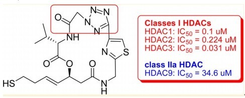近日,廣州生物醫(yī)藥與健康研究院蔣晟博士、涂正超博士和劉勁松博士聯合攻關,利用計算機輔助藥物設計原理和合理藥物設計的方法成功設計合成了新型組蛋白去乙?;窱型選擇性抑制劑。該先導化合物對HDAC1和HDAC9的選擇性是天然物largazole的10倍。這為進一步研究具有選擇性的組蛋白去乙?;敢种苿┨峁┝朔浅:玫哪P?。該研究成果已于2012年12月在美國化學會期刊ACS Medicinal Chemistry Letters上在線發(fā)表(DOI:10.1021/ml300371t)。