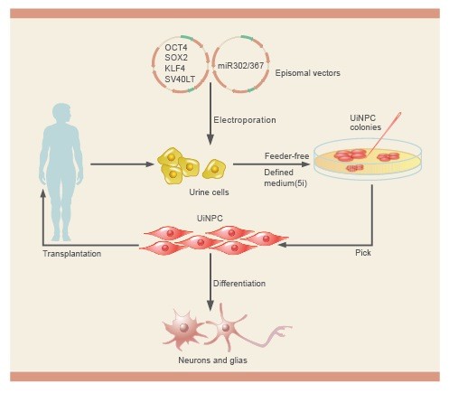 12月9日,國際權(quán)威學(xué)術(shù)期刊《自然—方法學(xué)》(Nature Methods)在線發(fā)表了中科院廣州生物醫(yī)藥與健康研究院裴端卿研究員和潘光錦研究員領(lǐng)導(dǎo)的研究組的最新研究成果 “利用病人尿液細(xì)胞獲得神經(jīng)干細(xì)胞”。他們研究通過特殊的手段將一些干細(xì)胞因子導(dǎo)入從病人尿液中分離而來的細(xì)胞中并通過特殊的誘導(dǎo)培養(yǎng)基培養(yǎng),成功地將病人的尿液細(xì)胞誘導(dǎo)轉(zhuǎn)變?yōu)榫哂泄δ艿纳窠?jīng)干細(xì)胞。這些由尿液細(xì)胞轉(zhuǎn)變而來的神經(jīng)干細(xì)胞能夠在體外擴(kuò)增并在適當(dāng)?shù)臈l件下分化成熟為人體中各種存在的神經(jīng)元和膠質(zhì)細(xì)胞。在進(jìn)一步的動(dòng)物模型的移植實(shí)驗(yàn)中,能夠很好的在體內(nèi)存活和融入宿主的腦環(huán)境中。
