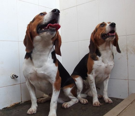 圖:15月齡的肌肉生長抑制素基因敲除比格犬(左為大力神,右為天狗)。