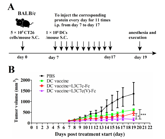 優(yōu)選高親和力PD-L1分子L3C7c融合蛋白在免疫健全Balb/c 荷瘤小鼠模型中的效能試驗(yàn)。