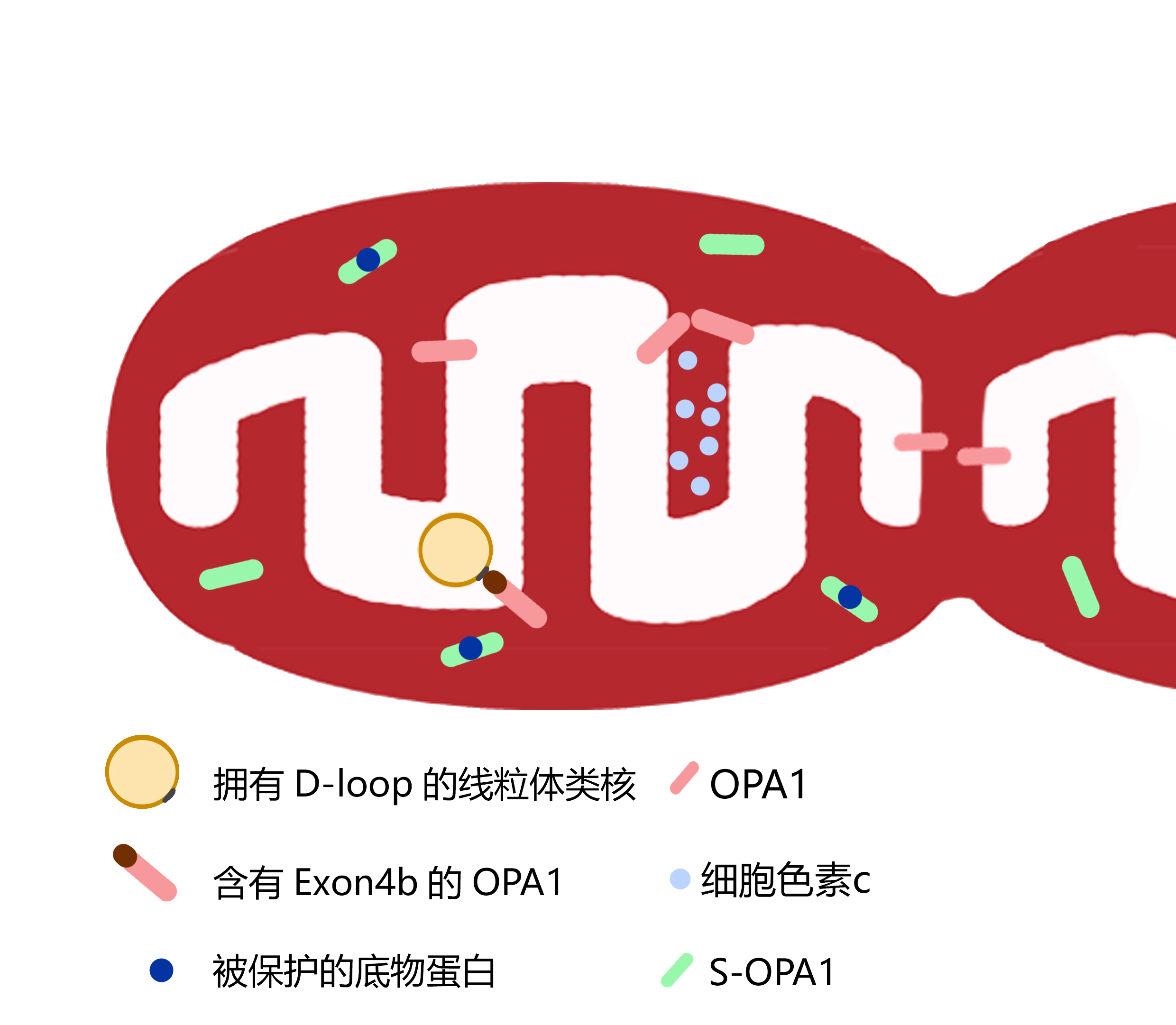 OPA1(Optic Atrophy 1,視神經(jīng)萎縮蛋白1)在多種生理病理中發(fā)揮重要作用,劉興國博士對OPA1在線粒體抗脅迫的作用進行了系統(tǒng)研究,這一持續(xù)的工作使人們對于OPA1在線粒體損傷中的“三頭六臂”的多重作用有了一個嶄新并全面的認識:首先,當(dāng)線粒體在脅迫條件下時,其膜間隙的可溶性短鏈蛋白S-OPA1作為分子伴侶,發(fā)揮“仁義”的作用,維持線粒體蛋白穩(wěn)態(tài);其次,當(dāng)線粒體通過社交得到外援而功能恢復(fù),OPA1不含外顯子4b的剪接體發(fā)揮了“情商”的決定作用,可以與其他功能正常的線粒體進行“kiss-and-run”或完全融合得到恢復(fù)(Liu X et al., 2019, EMBO J);再次,當(dāng)線粒體自我功能恢復(fù),OPA1含外顯子4b的剪接體發(fā)揮了“良知”的啟動作用,特異結(jié)合線粒體DNA的轉(zhuǎn)錄的調(diào)控區(qū)而恢復(fù)功能(Liu X*, 2020, Front Cell Dev Biol);最后,當(dāng)線粒體損傷嚴(yán)重將導(dǎo)致細胞死亡,OPA1則驟然“心碎” 釋放內(nèi)嵴的細胞色素c引發(fā)凋亡(Liu X*, 2015, Heptology)。