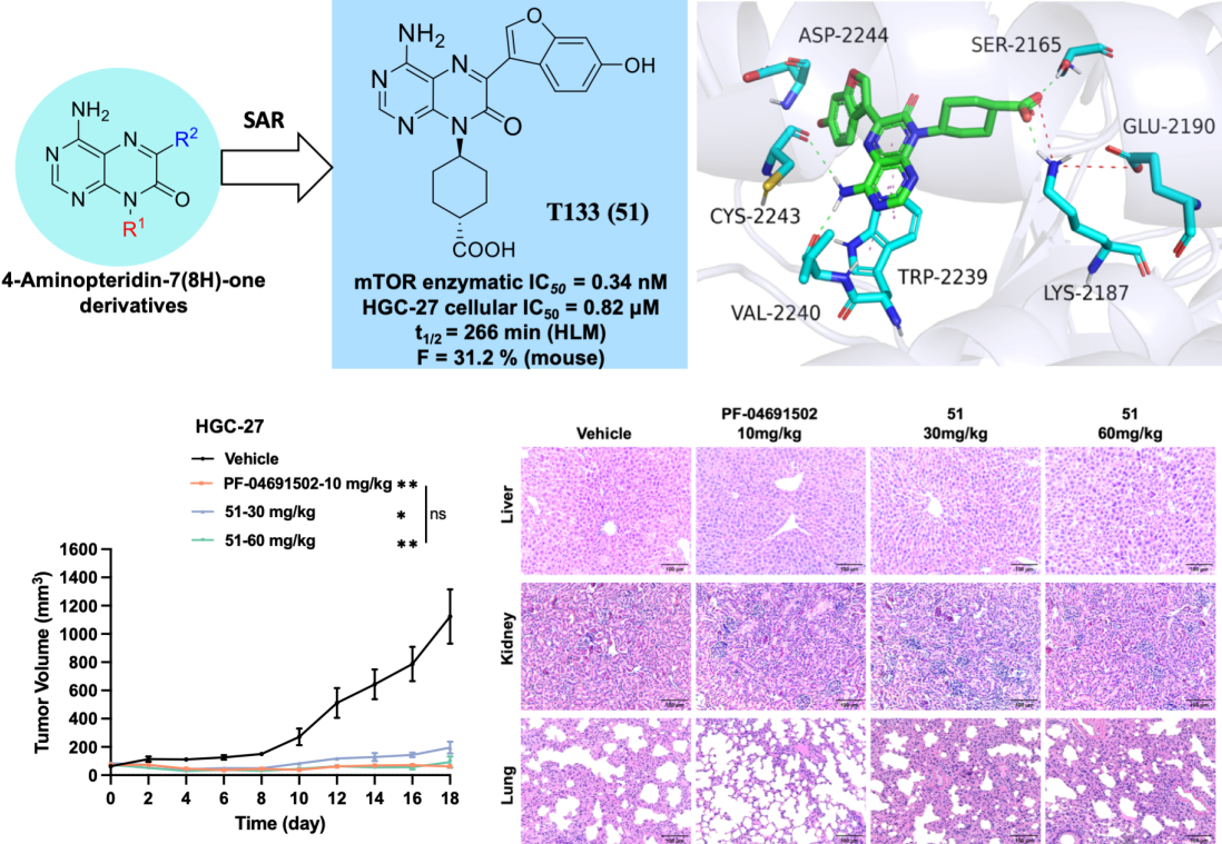 mTOR信號通路作為調控細胞生長、增殖與存活的核心樞紐,其異常激活與胃癌、肺癌、乳腺癌等多種癌癥的發(fā)生發(fā)展密切相關,一直是抗癌藥物研發(fā)的重要靶點。然而,目前已上市的mTOR抑制劑仍十分有限,絕大多數候選藥物因在臨床開發(fā)中效力不足、毒性過大或嚴重副作用等因素導致失敗。因此,開發(fā)兼具強效與安全性的新一代mTOR抑制劑成為該領域亟待突破的難題。