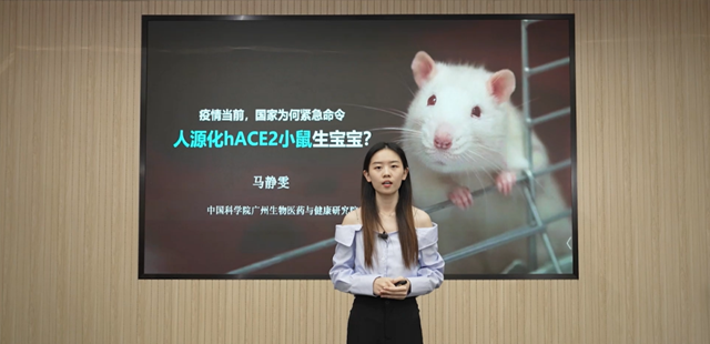 彭浩將干細(xì)胞比做會(huì)七十二變的孫悟空,以通俗易懂的語(yǔ)言帶觀眾走進(jìn)干細(xì)胞的世界,了解人類(lèi)由受精卵發(fā)育而來(lái)、傷口愈合和緩解衰老的秘密。自新冠疫情流行以來(lái),人們談“病毒”色變,高函函的講解科普了病毒的特征,病毒何以致病,倡導(dǎo)大家對(duì)病毒保持理性的態(tài)度。馬靜雯關(guān)注疫情當(dāng)前國(guó)家緊急命令人源化小鼠生寶寶的現(xiàn)象,講述作為動(dòng)物模型的小鼠對(duì)生物醫(yī)藥研發(fā)的重要作用。在人類(lèi)經(jīng)濟(jì)活動(dòng)和自然環(huán)境的影響下,使許多動(dòng)物瀕臨滅絕,甚至滅亡,林丹妮科普了如何從生物學(xué)的手段走出復(fù)活滅絕生物的第一步。4名選手發(fā)揮自身專(zhuān)業(yè)優(yōu)勢(shì),將生物醫(yī)藥與健康領(lǐng)域的專(zhuān)業(yè)知識(shí)通過(guò)生動(dòng)的語(yǔ)言、有趣的圖片向觀眾普及,贏得了評(píng)委老師的認(rèn)可。