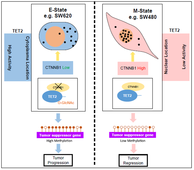 β-catenin介導(dǎo)TET2核轉(zhuǎn)位抑制腸癌進(jìn)展機(jī)制示意圖