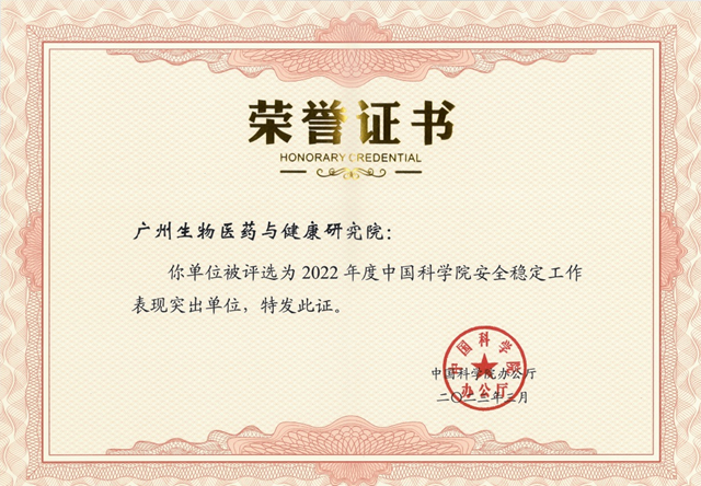 廣州健康院獲“中國(guó)科學(xué)院2022年度安全穩(wěn)定工作突出單位”稱號(hào)