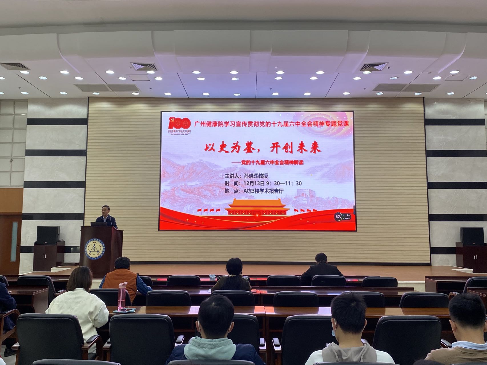 報(bào)告以《以史為鑒,開創(chuàng)未來——黨的十九屆六中全會解讀》為題,孫曉暉結(jié)合習(xí)近平總書記“七一”重要講話精神和前兩個(gè)歷史決議的內(nèi)容,從十九屆六中全會主要議程和重大意義、全會通過的《歷史決議》的主要內(nèi)容和理論創(chuàng)新和如何學(xué)習(xí)貫徹落實(shí)六中全會精神等方面作了精彩解讀。