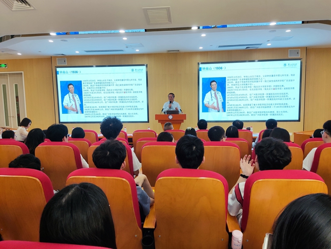劉金保教授詳細(xì)講述了鐘南山院士早年投身醫(yī)學(xué)、求學(xué)英倫到成長為呼吸疾病領(lǐng)域的領(lǐng)軍人才,帶領(lǐng)廣州醫(yī)科大學(xué)砥礪前行、取得一系列突出成就等詳細(xì)情況;講述了鐘院士在抗擊非典和新冠肺炎疫情中的擔(dān)當(dāng)作為和突出貢獻(xiàn),生動闡釋了何為“南山風(fēng)格”和“南山精神”。講座最后,劉金保教授對在座的同學(xué)寄予厚望,希望同學(xué)們以鐘院士為榜樣,傳承和弘揚(yáng)“南山精神”,腳踏實(shí)地、艱苦奮斗,在中華民族偉大復(fù)興的逐夢之旅中奉獻(xiàn)青春力量、實(shí)現(xiàn)人生價值。