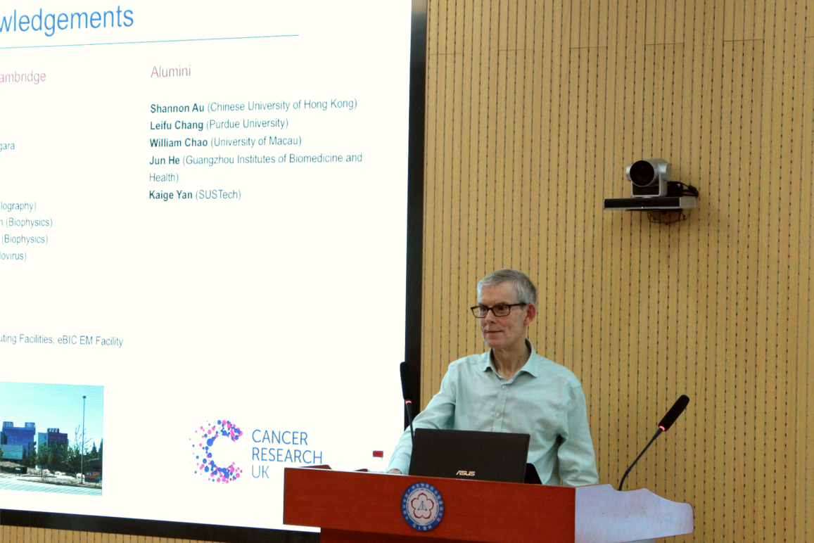 在本次報(bào)告中,David Barford院士從細(xì)胞有絲分裂的核心事件——染色體的精確分離這一基本科學(xué)問題切入,系統(tǒng)闡述了其團(tuán)隊(duì)如何通過高分辨率結(jié)構(gòu)生物學(xué)方法,揭示著絲粒的組裝和工作機(jī)理,其結(jié)構(gòu)洞察為理解細(xì)胞分裂的保真度提供了原子層面的基礎(chǔ)。此外,Dr.Barford還分享了他正在進(jìn)行的最新研究,利用前沿的原位冷凍電鏡技術(shù),觀測(cè)著絲粒在細(xì)胞內(nèi)部真實(shí)的動(dòng)態(tài)組裝機(jī)制。