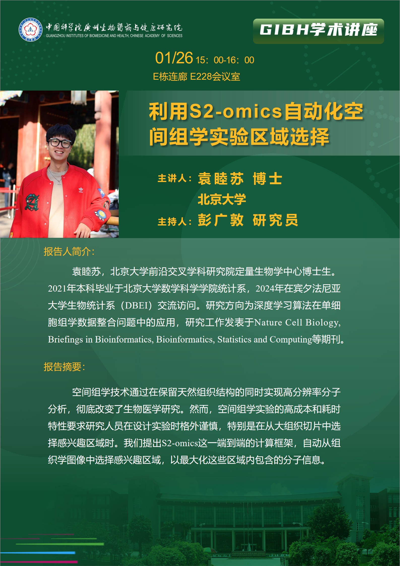 2026年1月26日學(xué)術(shù)講座: 利用S2-omics自動(dòng)化空間組學(xué)實(shí)驗(yàn)區(qū)域選擇