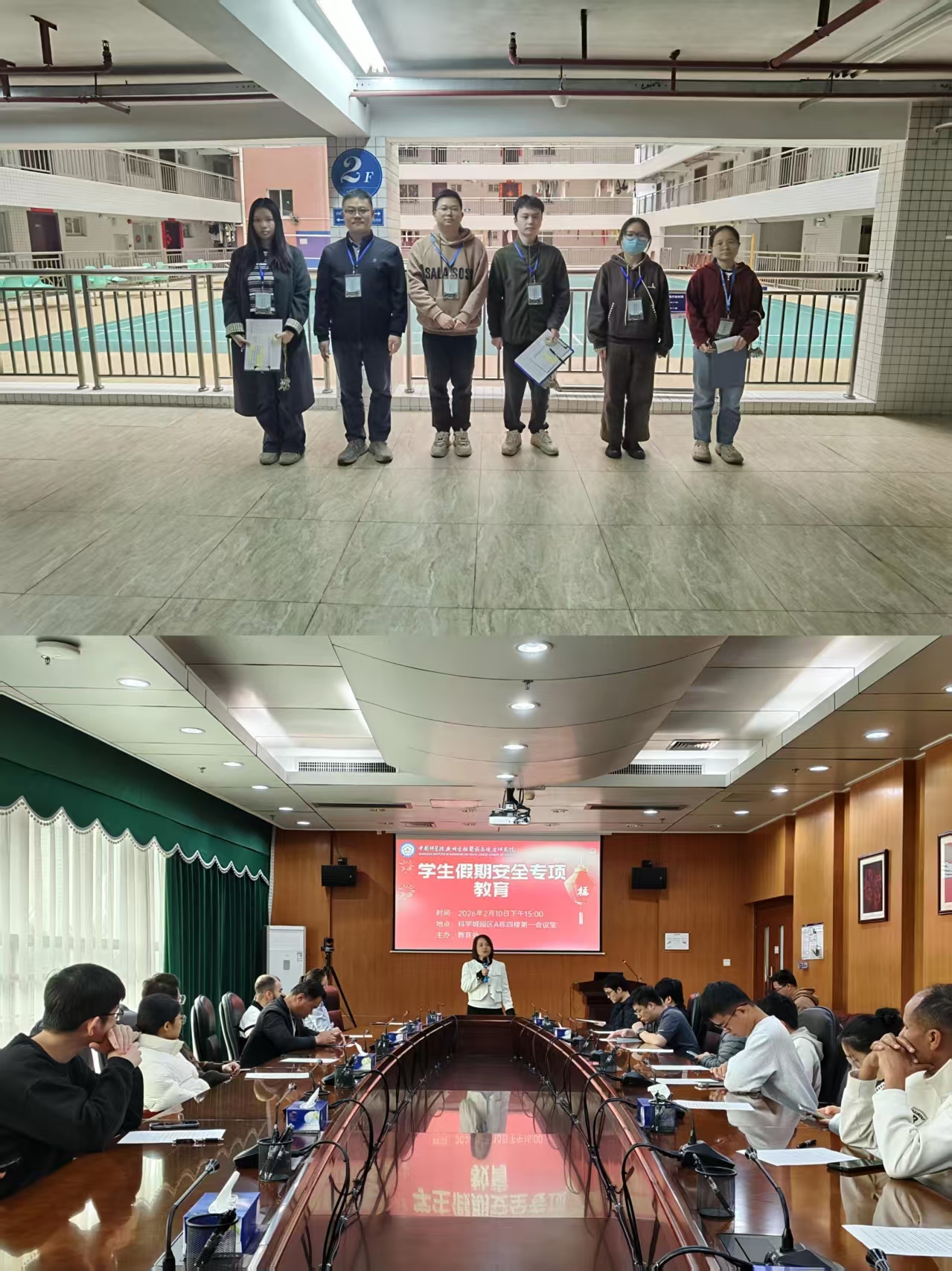 次日,教育處召開學(xué)生假期安全專項(xiàng)教育會。會上,教育處負(fù)責(zé)人鄭小潔向?qū)W生致以誠摯的新春祝福,并慰問假期堅守科研崗位的學(xué)生。她強(qiáng)調(diào),科研工作必須以安全為前提,實(shí)驗(yàn)期間須確保有工作人員在崗值守并落實(shí)安全防護(hù)措施,同時建議學(xué)生保持規(guī)律作息和適度鍛煉。隨后,教育處主管羅國龍向?qū)W生開展了安全法紀(jì)教育,組織假期留院學(xué)生簽署安全承諾書,并為留院學(xué)生發(fā)放慰問品。此外,教育處還聯(lián)合學(xué)生輔導(dǎo)員,通過主題班會、“談心談話”等多種形式,持續(xù)開展對學(xué)生的關(guān)心關(guān)懷活動。