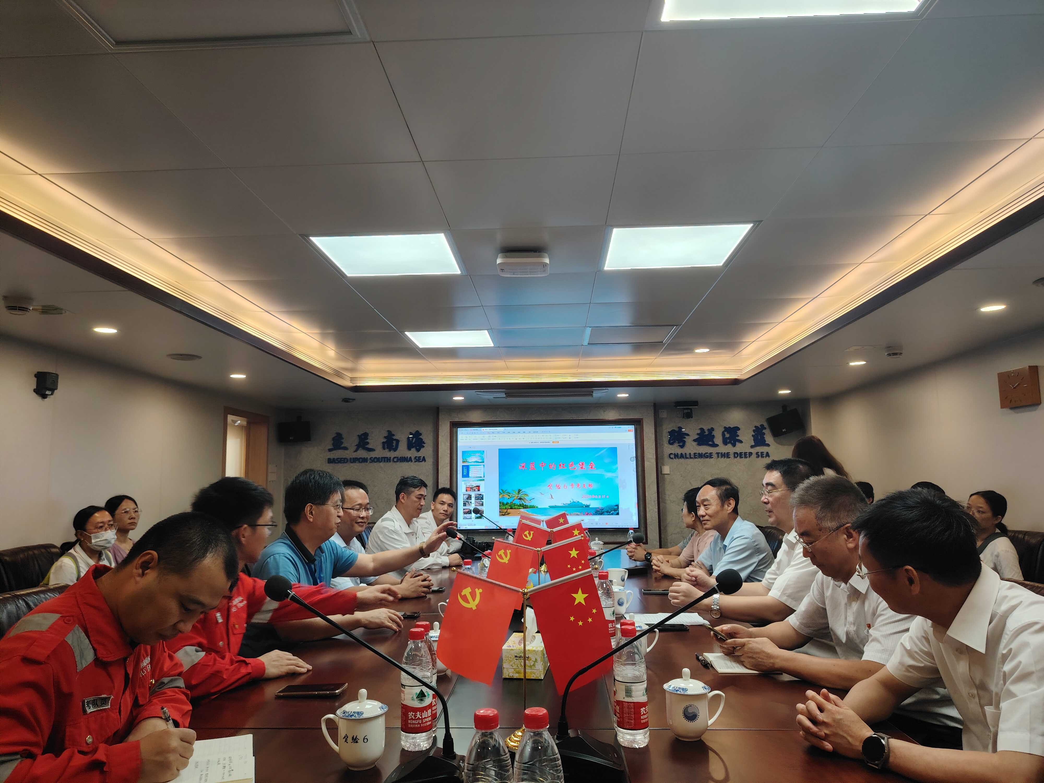 在交流座談會上,代亮同志致歡迎辭。他指出,廣州健康院作為國內(nèi)健康領(lǐng)域特有的整建制的國立科研機(jī)構(gòu),在堅持“四個面向”尤其是“面向人民健康”方面作出了重要貢獻(xiàn),期待在新時代新征程取得更大的成就。南海海洋所“實驗6”實習(xí)船長以“深藍(lán)中的紅色堡壘”為題,圍繞支部黨建、黨建與業(yè)務(wù)融合、科普工作和海上生活等作分享交流。廣州健康院技術(shù)支撐黨支部書記以“始終發(fā)揮黨組織在關(guān)鍵核心技術(shù)突破中的戰(zhàn)斗堡壘作用”為題,講解了大科學(xué)工程建設(shè)中黨組織發(fā)揮的關(guān)鍵作用,分享了廣州健康院技術(shù)支撐平臺全力支持保障科技創(chuàng)新以及創(chuàng)建有特色的“四強(qiáng)”黨支部的經(jīng)驗做法。接著,雙方黨員圍繞南海所實驗6科考船和廣州健康院譜系大設(shè)施的建設(shè)運(yùn)行情況展開熱烈的主題交流研討。