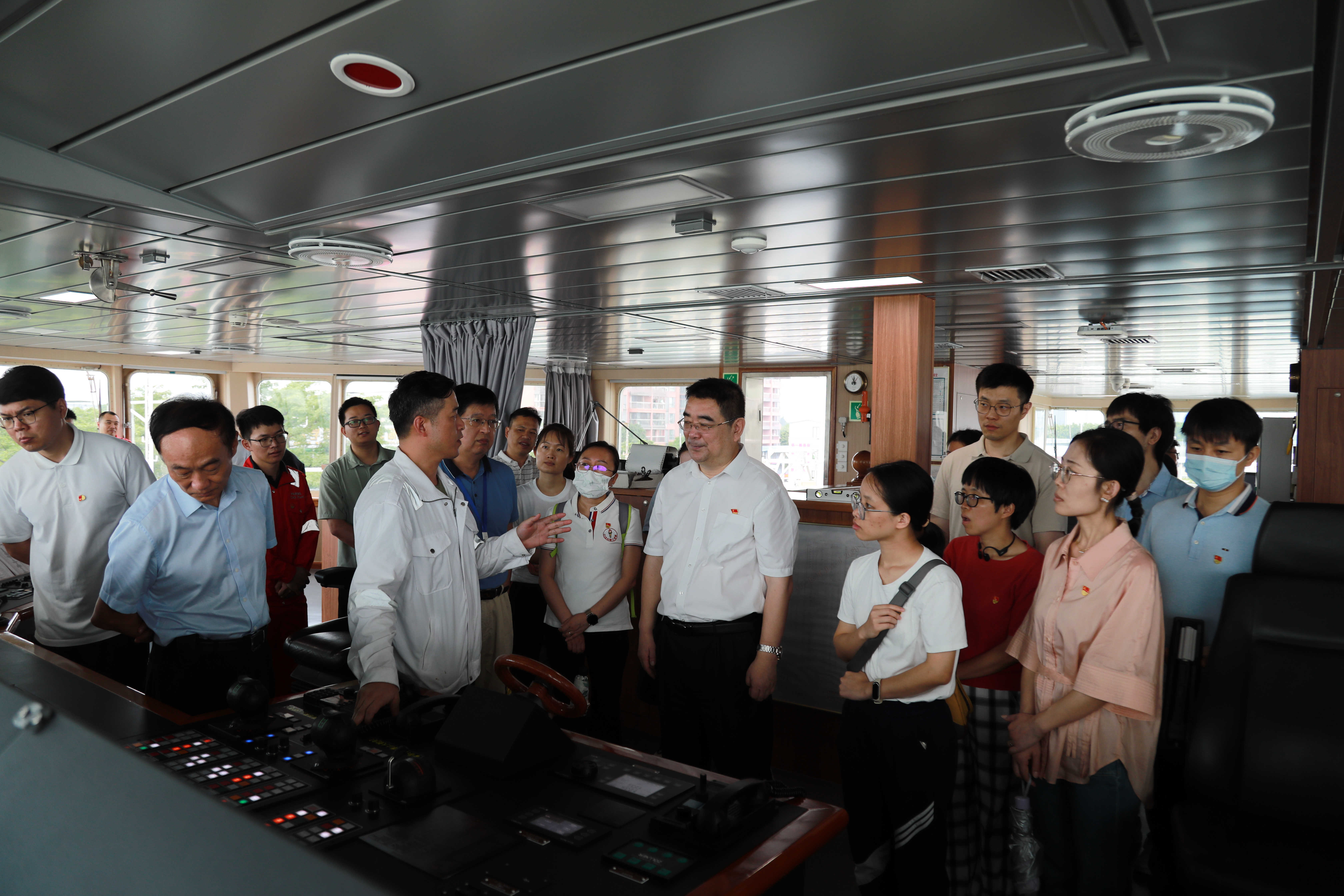 黨員們興致勃勃地登上“實驗6”號科考船,參觀船舶的“心臟地帶--集控室”、駕駛室等艙室,仔細(xì)了解各種科考設(shè)施設(shè)備的作用和功能。在講解員生動形象的講述中,大家對我國海洋科事業(yè)的發(fā)展進(jìn)步有了更多的認(rèn)識,對科考人員無私奉獻(xiàn)和積極進(jìn)取的精神有了更深的感悟。