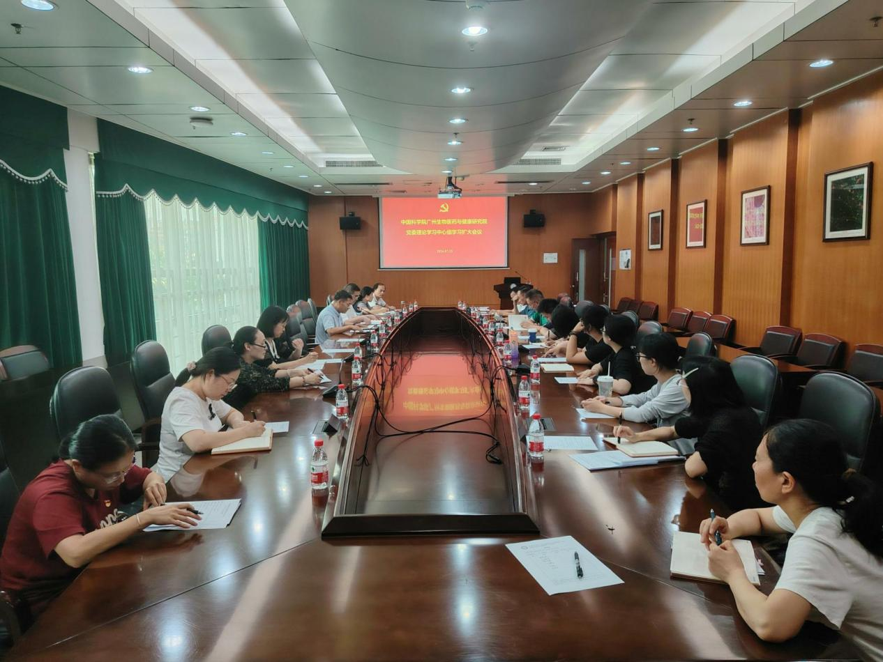 7月25日,中國科學院廣州健康院召開黨委理論學習中心組學習擴大會,深入學習領會習近平總書記在“科技三會”上的重要講話精神,傳達學習黨的二十屆三中全會精神,研究進一步深入貫徹落實的思路舉措。黨委書記張鴻翔主持會議。