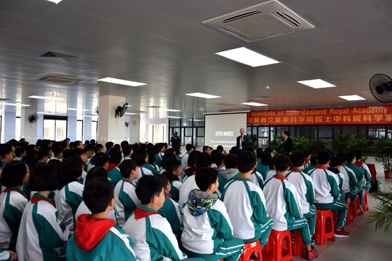 活動上,Rod Dunbar教授、廣州生物院李尹雄研究員、吳東海研究員等科學家分別作了《新西蘭教育與文化》、《我的科學故事》等主題講座。Rod告訴師生們,新西蘭的教育方式,更注重強調(diào)怎么讓小孩去“玩”,培養(yǎng)小孩的探索、創(chuàng)造力及創(chuàng)新能力。Rod還講到新西蘭的人文、土著毛利族,國鳥Kiwi(幾維鳥)、生態(tài)保護等方面,談到興致時,Rod歡快地唱起了歌。李尹雄研究員則通過自身做人做事的體會去引導學生如何樹立正確的人生觀和價值觀,并講述了自己在美國20年不改國籍的愛國故事。