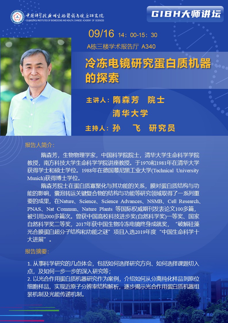 2025年9月16日大師講壇:冷凍電鏡研究蛋白質(zhì)機器的探索