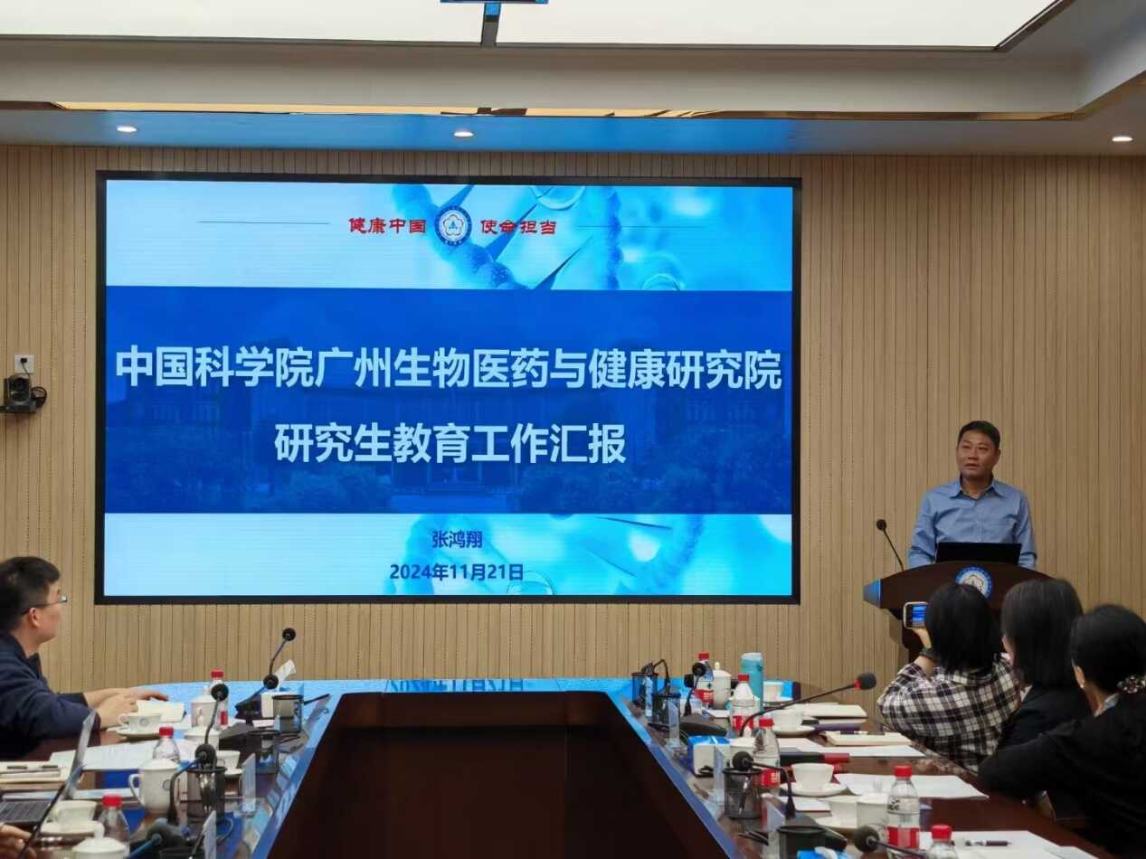 11月21日,中國科學(xué)院大學(xué)黨委常委、副校長金德鵬一行到廣州健康院調(diào)研研究生教育工作,校學(xué)生處處長王崗、校團(tuán)委書記陳睿、校學(xué)生工作部副部長王潔婷、校畢業(yè)生就業(yè)指導(dǎo)中心主任常宏武,以及中國科學(xué)院廣州分院人事人才處業(yè)務(wù)主管張正雍等陪同調(diào)研。健康院黨委書記、副院長張鴻翔和黨委副書記、紀(jì)委書記徐海熱情接待了金德鵬副校長一行。人事教育處、黨群工作處等部門負(fù)責(zé)人和研究生部、團(tuán)委的相關(guān)工作人員參加調(diào)研座談會。