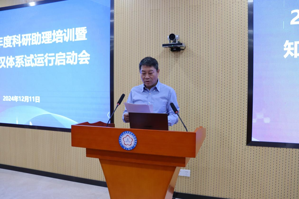 廣州健康院黨委書記張鴻翔發(fā)表致辭并宣讀《廣州健康院知識產(chǎn)權(quán)管理手冊》頒布令。張鴻翔強(qiáng)調(diào),科研助理是科研工作的重要力量,要加強(qiáng)學(xué)習(xí)和交流,將所學(xué)知識與實(shí)際工作緊密結(jié)合,不斷提升自身專業(yè)素養(yǎng)和業(yè)務(wù)能力,為研究院科研工作的高質(zhì)量發(fā)展貢獻(xiàn)力量。同時(shí),要高度重視知識產(chǎn)權(quán)管理工作,在知識產(chǎn)權(quán)體系試運(yùn)行過程中,加強(qiáng)溝通協(xié)作,形成工作合力,確保知識產(chǎn)權(quán)貫標(biāo)工作有序開展,為研究院的科技創(chuàng)新和產(chǎn)業(yè)發(fā)展提供有力保障。
