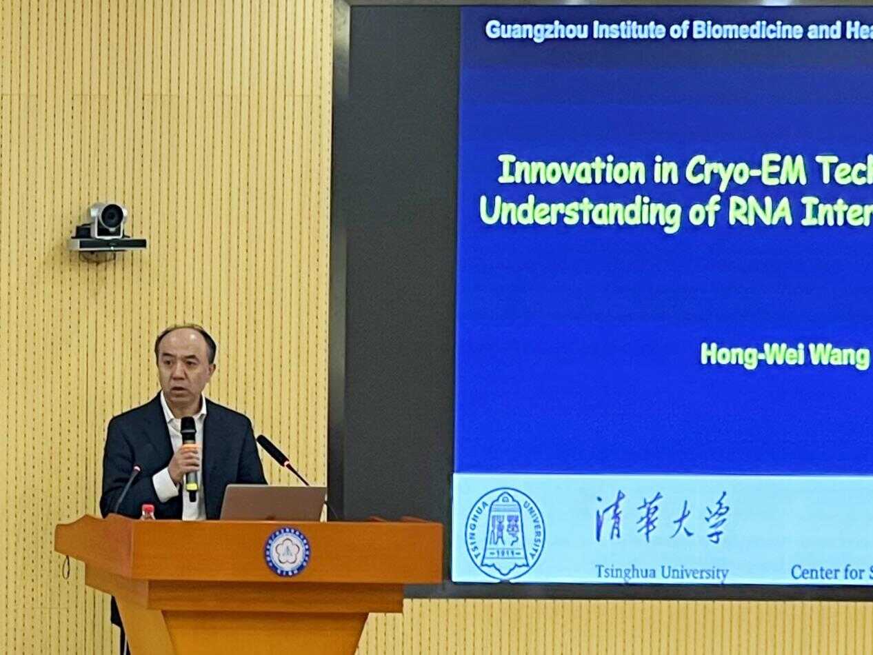 2026年1月16日,清華大學(xué)黨委常委、副校長(zhǎng)王宏偉教授到訪中國(guó)科學(xué)院廣州生物醫(yī)藥與健康研究院(以下簡(jiǎn)稱“廣州健康院”),并以“Innovation in Cryo-EM technology towards understanding of RNA interference pathway”為題作學(xué)術(shù)報(bào)告。學(xué)術(shù)交流會(huì)由廣州健康院副院長(zhǎng)(主持工作)孫飛主持,吸引院內(nèi)80余名師生及科研人員參與學(xué)習(xí)。