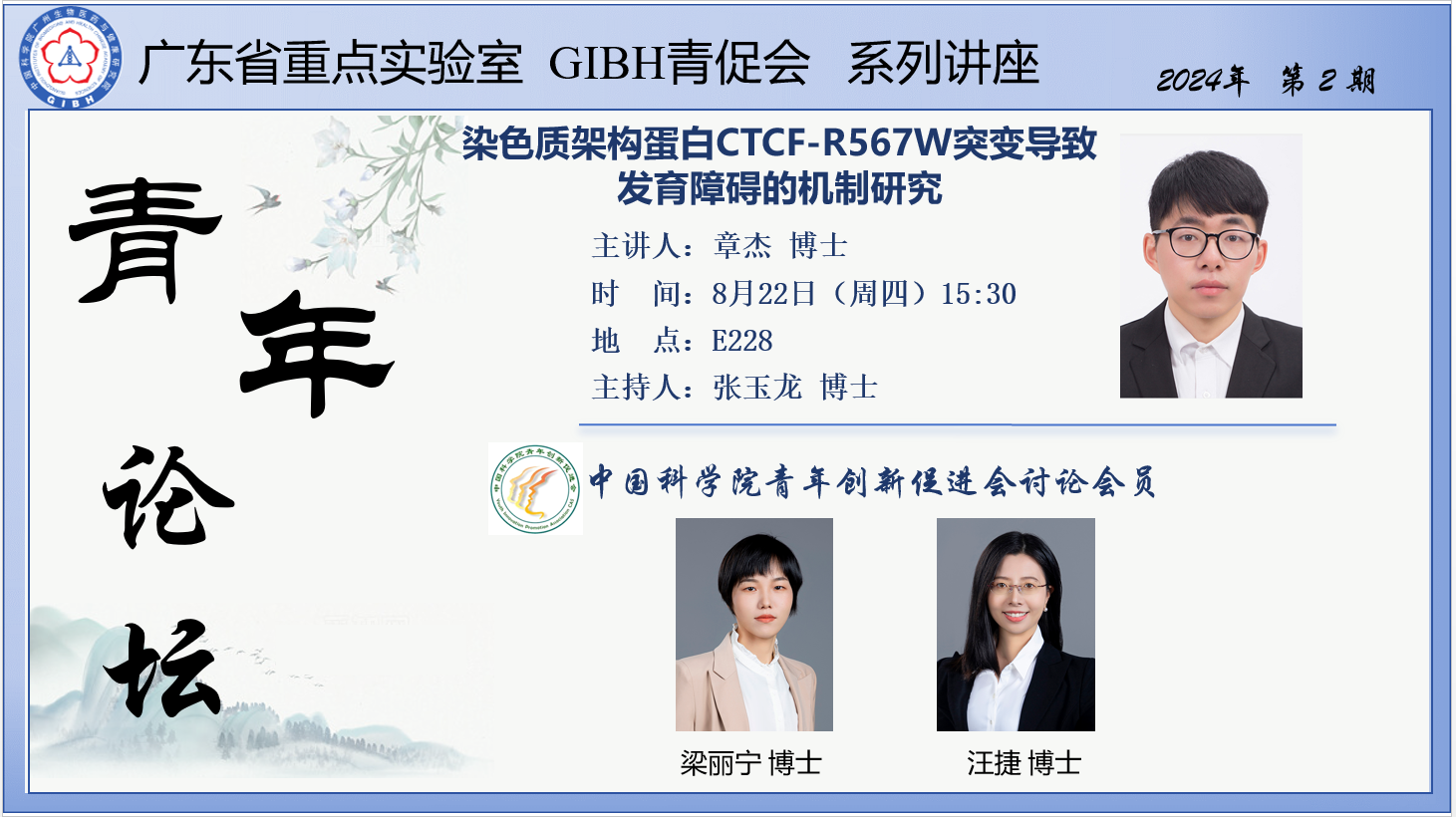 2024年8月22日廣東省重點(diǎn)實(shí)驗(yàn)室GIBH青促會(huì)系列講座(2024年第2期):染色質(zhì)架構(gòu)蛋白CTCF-R567W突變導(dǎo)致發(fā)育障礙的機(jī)制研究