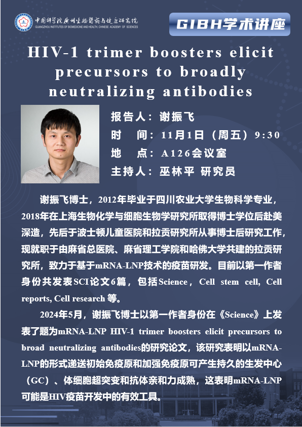2024年11月1日學(xué)術(shù)講座:HIV-1 trimer boosters elicit precursors to broadly neutralizing antibodies
