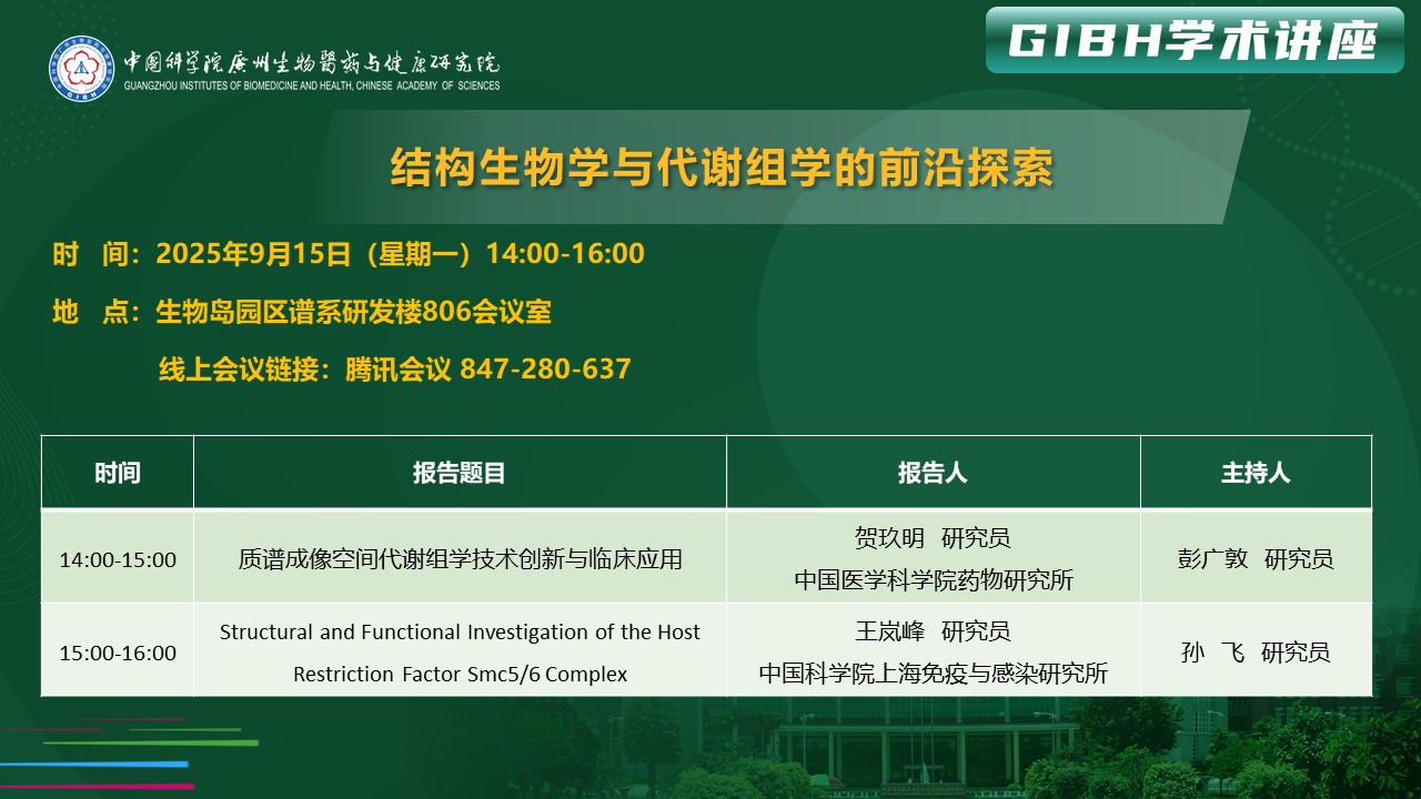 2025年9月15日學術講座:結構生物學與代謝組學的前沿探索