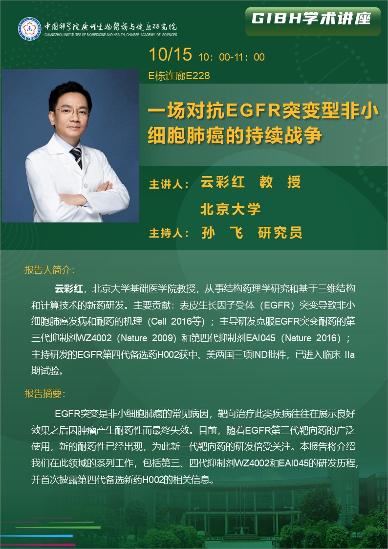 2025年10月15日學(xué)術(shù)講座: 一場(chǎng)對(duì)抗EGFR突變型非小細(xì)胞肺癌的持續(xù)戰(zhàn)爭(zhēng)
