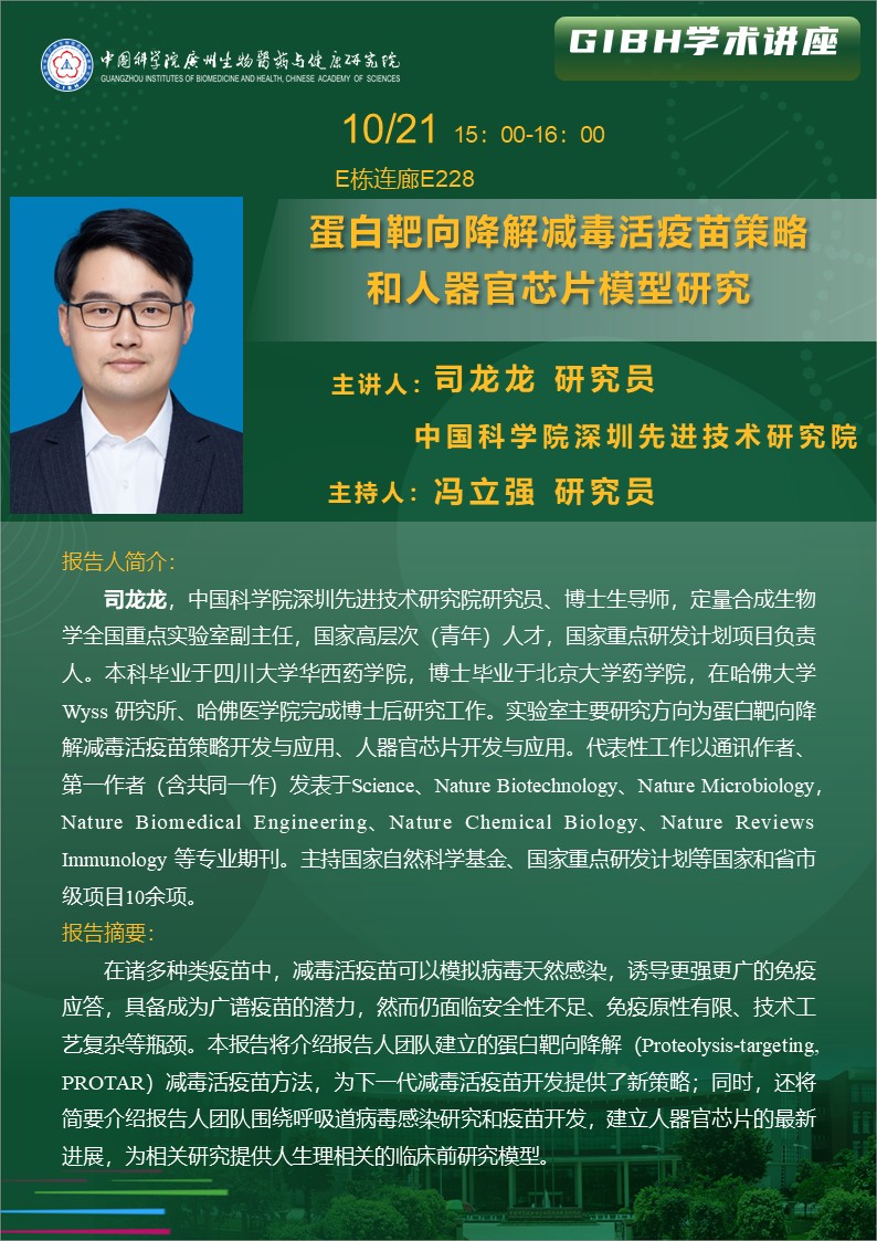 2025年10月21日學(xué)術(shù)講座: 蛋白靶向降解減毒活疫苗策略和人器官芯片模型研究