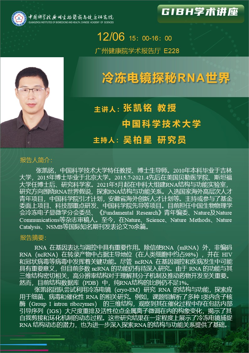 2025年12月6日學(xué)術(shù)講座: 冷凍電鏡探秘RNA世界
